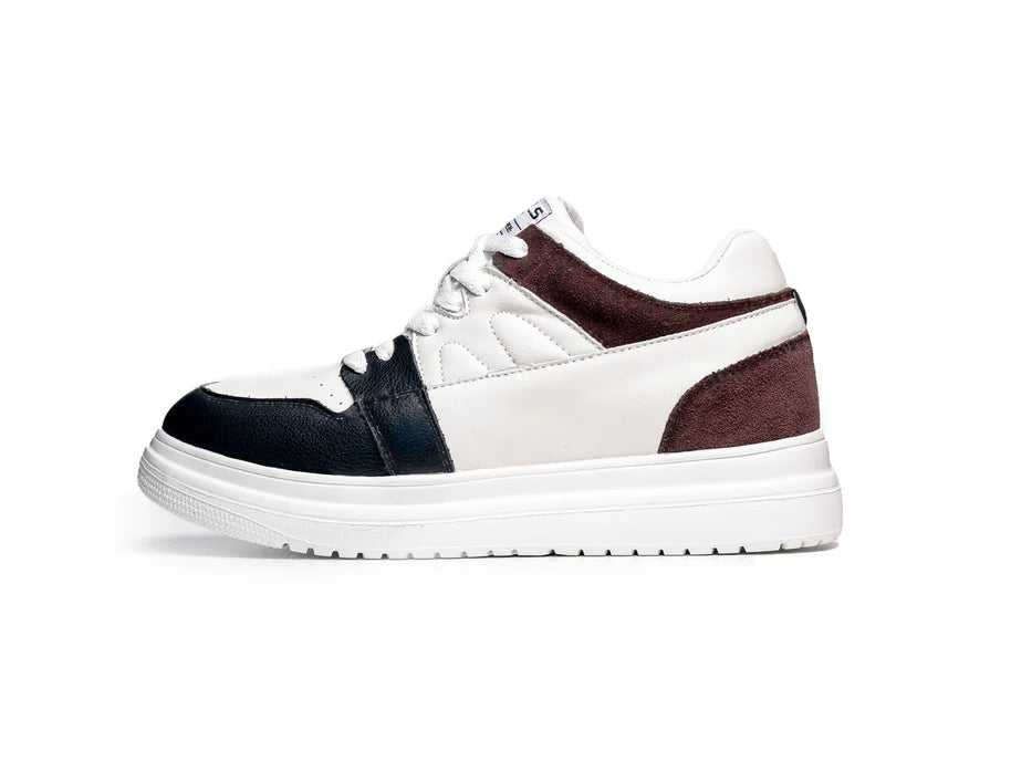 The Mocha Axels redefine casual luxury with a crisp white upper, contrasted by rich black and mocha overlays. Designed with a 2.5-inch integrated elevation, they provide a discreet yet significant height boost while maintaining a sleek, contemporary aesthetic.